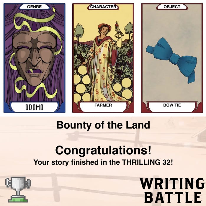 The results are in! I cannot believe I made it to the finals, but I did, and even survived the first round to then be knocked out in the 32 round. This is much bette than the last competition I entered at writing battle. This one was professional judged only. They provide detailed feedback from the judges which were all really good. Given I won my first three rounds, which is what you receive feedback for, almost all of it was positive.